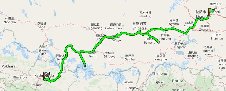 Een groepsfietsreis van Lhasa naar Kathmandu.