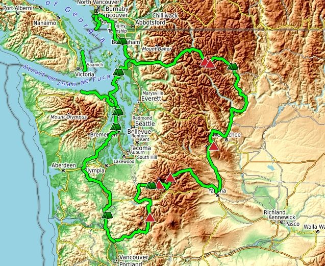 We gaan een rondje Washington State maken en komen via Vancouver Island terug bij onze startplek.
