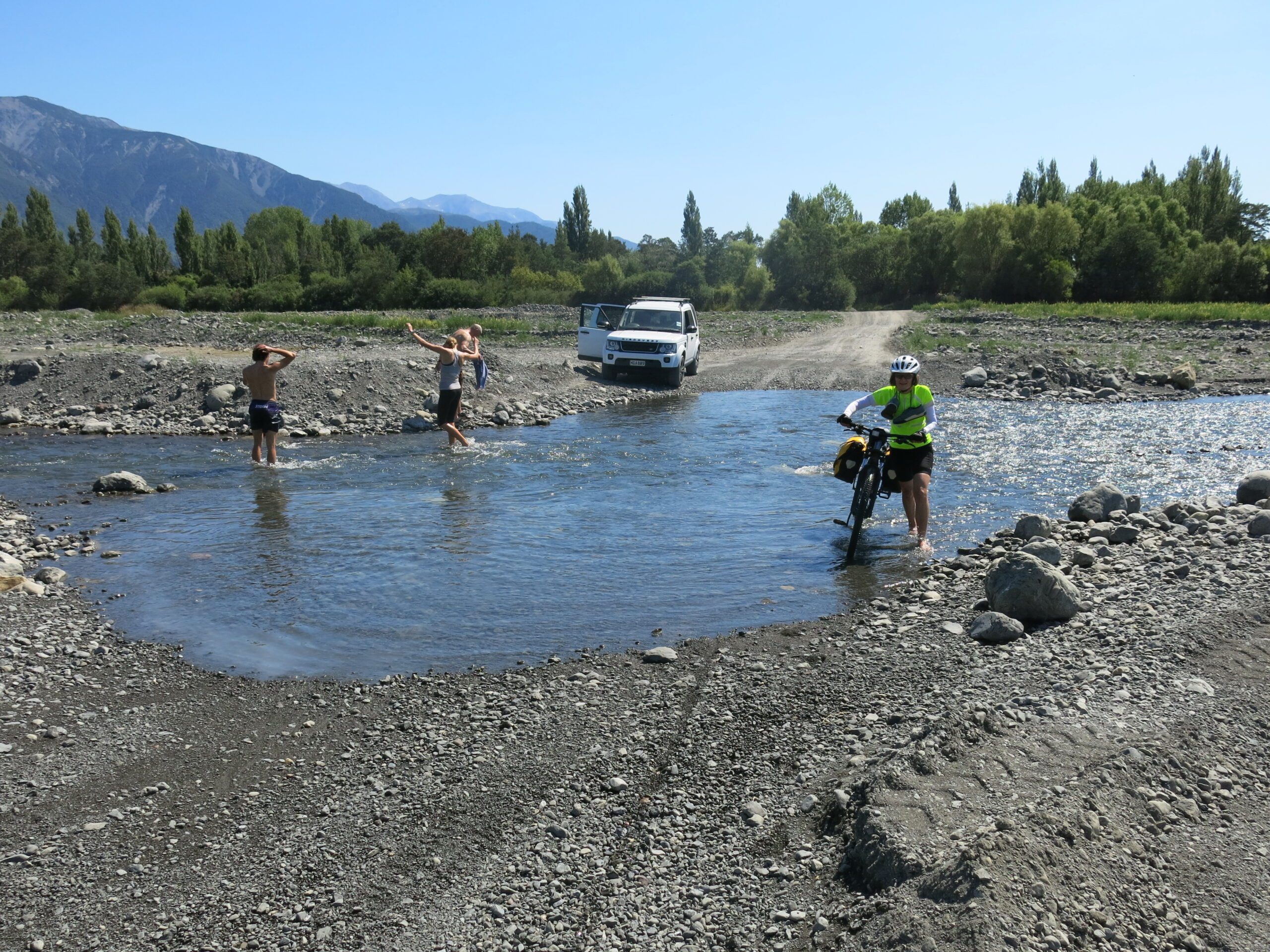 In de eerste 15 kilometers vanuit Kaikoura zouden we over een track rijden. Maar dan moeten we een paar keer door het water en daar hebben we met onze E-bikes geen zin in.